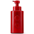 A revitalising hand lotion in a red glass pump bottle.